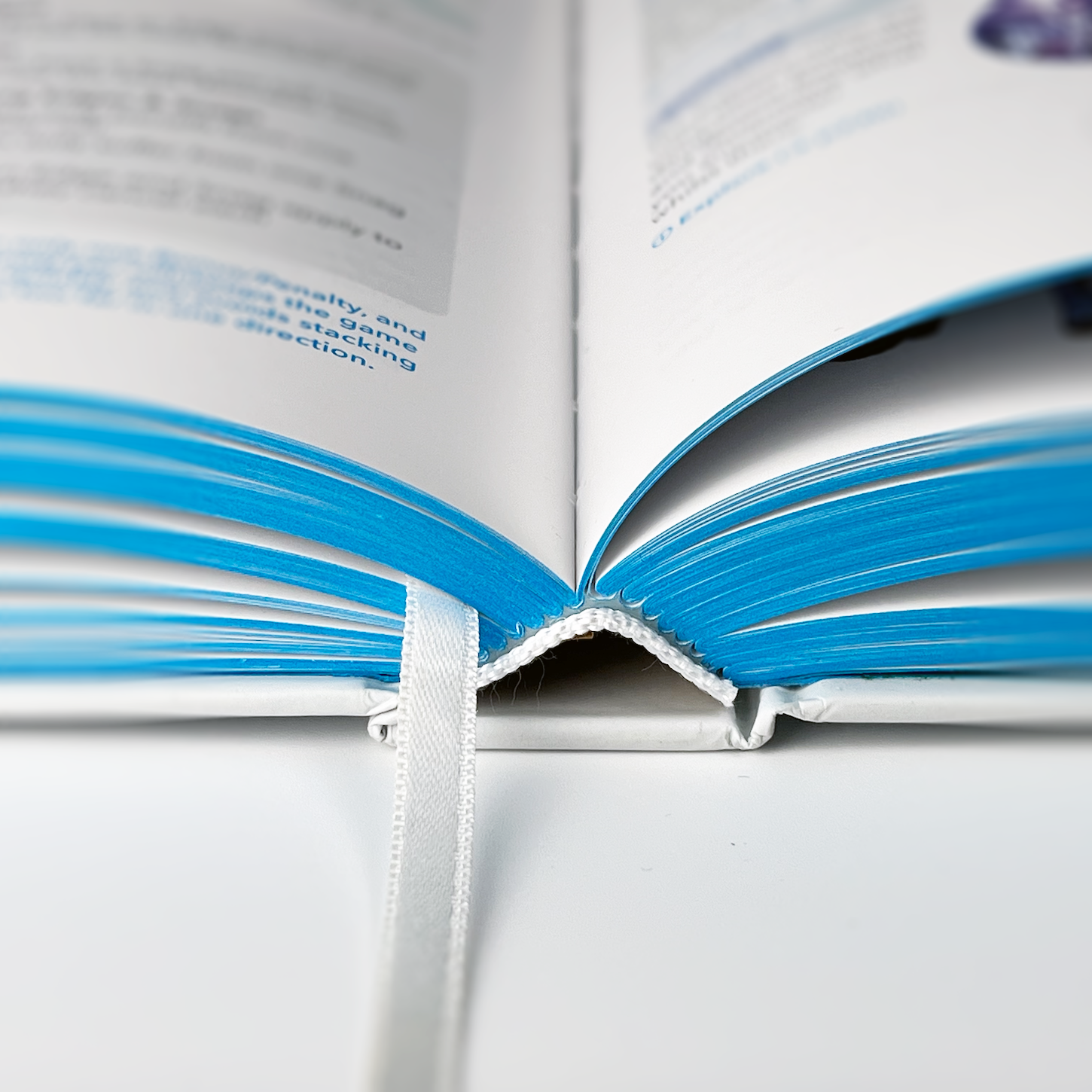 The book is built to last. It's a hardback, stitch-bound, filled with thick, high-quality paper. It also comes with a handy ribbon bookmark.